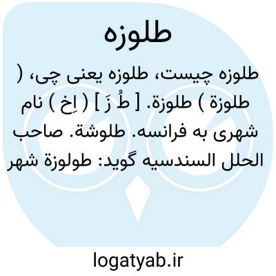 ( طلوزة ) طلوزة. [ طُ زَ ] ( اِخ ) نام شهری به فرانسه. طلوشة. صاحب الحلل السندسیه گوید: طولوزة شهر کوچکی است که سکان آن شش هزار تن است و موقع سرسبز و خرمی دارد و دارای کارخانه های کاغذسازی است. این شهر بر ساحل نهر اوریة است. ( الحلل السندسیه ج 1 ص 338 ).