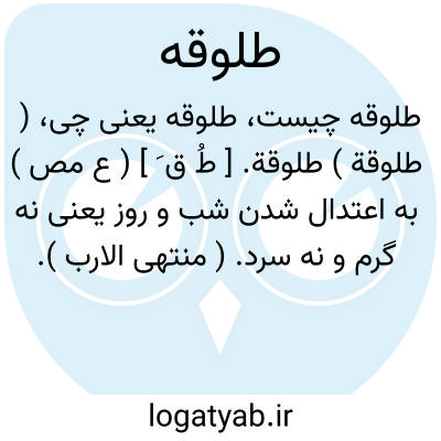 ( طلوقة ) طلوقة. [ طُ ق َ ] ( ع مص ) به اعتدال شدن شب و روز یعنی نه گرم و نه سرد. ( منتهی الارب ).