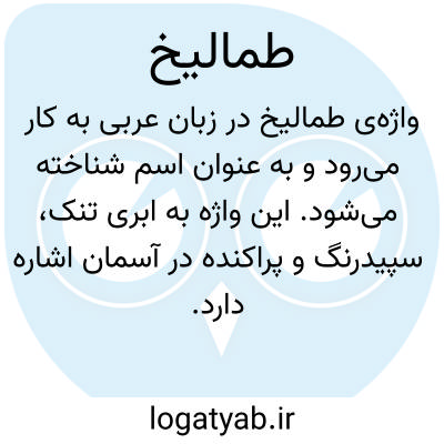 واژه‌ی طِمالیخ در زبان عربی به کار می‌رود و به عنوان اسم شناخته می‌شود. این واژه به ابری تنک، سپیدرنگ و پراکنده در آسمان اشاره دارد که معمولاً حالتی لطیف و غیرمتراکم دارد. بر پایه‌ی منبع معتبر منتهی الارب که از فرهنگ‌نامه‌های کهن لغت عربی محسوب می‌شود، این تعریف به‌طور دقیق برای طِمالیخ ثبت شده است. در ادبیات و متون کهن، از این واژه برای توصیف وضعیت جوّ و حالت خاص ابرها استفاده شده است. چنین کاربردی نشان‌دهنده‌ی دقت و ظرافت زبان عربی در بیان پدیده‌های طبیعی و ارائه‌ی توصیف‌های دقیق از آن‌ها است. این واژه با وجود سادگی، تصویری روشن و گویا از منظره‌ای آسمانی را به ذهن متبادر می‌سازد. امروزه نیز اگرچه ممکن است کاربرد روزمره‌ی این واژه کمتر باشد، اما در متون ادبی، شعر و پژوهش‌های مربوط به هواشناسی تاریخی یا ادبیات کلاسیک می‌توان به آن برخورد. شناخت چنین واژه‌هایی نه تنها گنجینه‌ی لغوی ما را غنی می‌کند، بلکه درک بهتری از فرهنگ و دانش گذشتگان در توصیف جهان پیرامون به ما می‌بخشد.