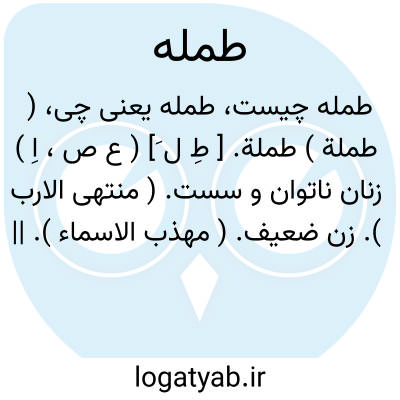 ( طملة ) طملة. [ طِ ل َ] ( ع ص، اِ ) زنان ناتوان و سست. ( منتهی الارب ). زن ضعیف. ( مهذب الاسماء ). || لای. || کار زشت. ( منتهی الارب ).