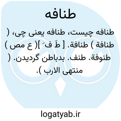 ( طنافة ) طنافة. [ طَ ف َ ]( ع مص ) طنوفة. طنف. بدباطن گردیدن. ( منتهی الارب ).