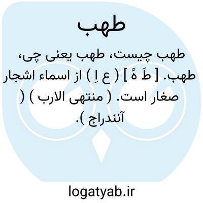 طهب. [ طَ هََ ] ( ع اِ ) از اسماء اشجار صغار است. ( منتهی الارب ) ( آنندراج ).