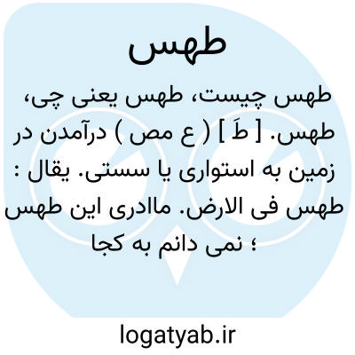 طهس. [ طَ ] ( ع مص ) درآمدن در زمین به استواری یا سستی. یقال: طهس فی الارض. ماادری این طهس؛ نمی دانم به کجا رفت. و کذا ماادری این طهس به، مجهولاً. ( منتهی الارب ) ( آنندراج ).