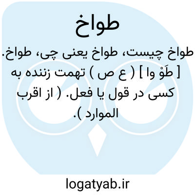 طواخ. [ طَوْ وا ] ( ع ص ) تهمت زننده به کسی در قول یا فعل. ( از اقرب الموارد ).
