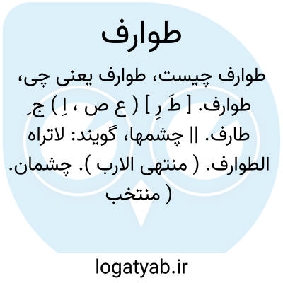 (طَ رِ ) [ ع. ] (ص. اِ. ) ۱ - جِ طارف. ۲ - چشم ها. ۳ - خیمه ها و خرگاه های دامن واکرده جهت نگریستن ماوراء آن. ۴ - ددان که شکار را بربایند.