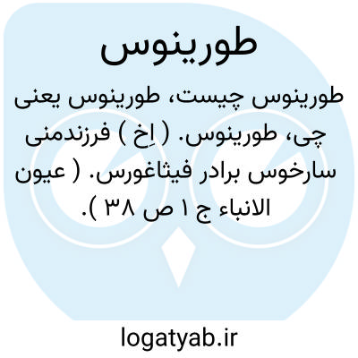 طورینوس. ( اِخ ) فرزندمنی سارخوس برادر فیثاغورس. ( عیون الانباء ج 1 ص 38 ).