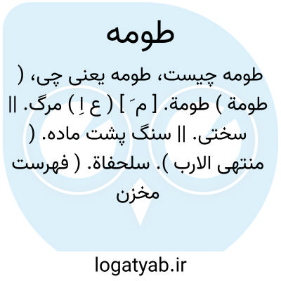 ( طومة ) طومة. [ م َ ] ( ع اِ ) مرگ. || سختی. || سنگ پشت ماده. ( منتهی الارب ). سلحفاة. ( فهرست مخزن الادویه ).