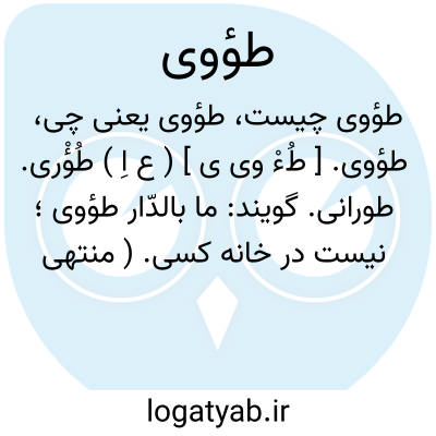 لغت نامه دهخدا طؤوی. [ طُءْ وی ی ] ( ع اِ ) طُؤْری. طورانی. گویند: ما بالدّار طؤوی؛ نیست در خانه کسی. ( منتهی الارب ). رجوع به طؤری شود.