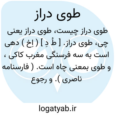 طوی دراز. [ طُ دِ ] ( اِخ ) دهی است به سه فرسنگی مغرب کاکی، و طوی بمعنی چاه است. ( فارسنامه ناصری ). و رجوع به طویل دراز شود.