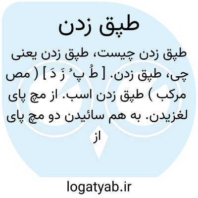 لغت نامه دهخدا طپق زدن. [ طُ پ ُ زَ دَ ] ( مص مرکب ) طپق زدن اسب. از مچ پای لغزیدن. به هم سائیدن دو مچ پای از داخل.- طپق زدن زبان؛ حرفی را بجای حرفی دیگر ادا کردن، چنانکه «لام » را بجای «را».