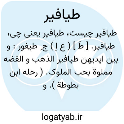 طیافیر. [ طَ ] ( ع اِ ) ج ِ طیفور: و بین ایدیهن طیافیر الذهب و الفضه مملوة بحب الملوک. ( رحله ابن بطوطة ). و رجوع به طیفور شود.