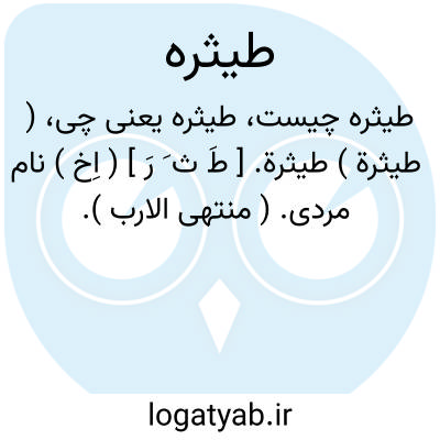( طیثرة ) طیثرة. [ طَ ث َ رَ ] ( اِخ ) نام مردی. ( منتهی الارب ).