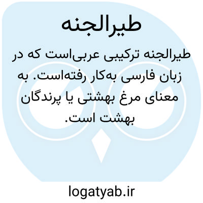 ( طیرالجنة ) طیرالجنة. [ طَ رُل ْ ج َن ْن َ ] ( ع اِ مرکب ) مرغ بهشتی. || فلک.