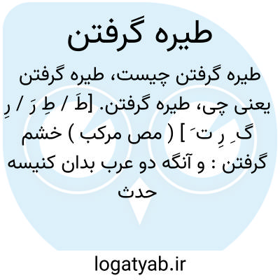 طیره گرفتن. [طَ / طِ رَ / رِ گ ِ رِ ت َ ] ( مص مرکب ) خشم گرفتن: و آنگه دو عرب بدان کنیسه حدث کردند و در محراب مالیدند و ابرهه طیره گرفت. ( مجمل التواریخ ).
