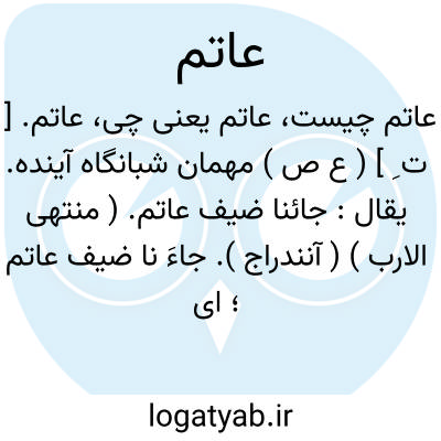 لغت نامه دهخدا عاتم. [ ت ِ ] ( ع ص ) مهمان شبانگاه آینده. یقال: جائنا ضیف عاتم. ( منتهی الارب ) ( آنندراج ). جاءَ نا ضیف عاتم؛ ای بطی ممس. ( اقرب الموارد ).