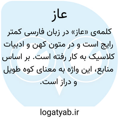 کلمه‌ی «عاز» در زبان فارسی کمتر رایج است و در متون کهن و ادبیات کلاسیک به کار رفته است. بر اساس منابع، این واژه به معنای کوه طویل و دراز است. این واژه بیشتر برای توصیف کوه‌هایی به کار می‌رود که طول زیادی دارند و در چشم‌انداز طبیعی به صورت کشیده و ممتد دیده می‌شوند.
