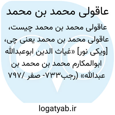 [ویکی نور] «غیاث الدین ابوعبدالله ابوالمکارم محمد بن محمد بن عبدالله» (رجب733- صفر /797 مارس1333- نوامبر 1394)، مشهور به ابن عاقولی، محدث و فقیه شافعی که به سبب اقامت اجدادش در عاقول (قریه ای در بخش شرقی واسط) به آن جا منسوب شده است.