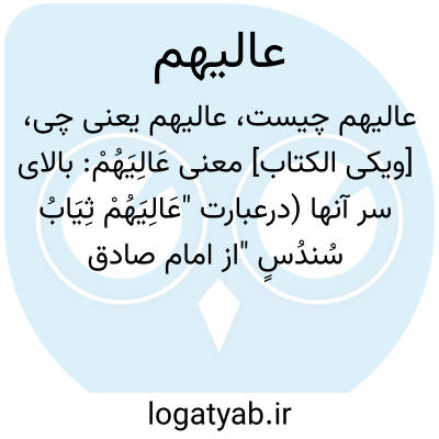 [ویکی الکتاب] معنی عَالِیَهُمْ: بالای سر آنها (درعبارت "عَالِیَهُمْ ثِیَابُ سُندُسٍ "از امام صادق (علیهالسلام) روایت شده که در معنای آن فرمود: جامه بهشتی خودش بالای سر اولیای خدا قرار میگیرد پس آن را در تن خود میکنند. )