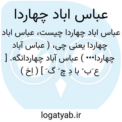 ( عباس آباد چهاردا••• ) عباس آباد چهاردانگه. [ ع َب ْ با دِ چ َ گ َ ] ( اِخ ) ده کوچکی است از بخش ری شهرستان تهران. واقع در 9500گزی باختر ری و 4000گزی جنوب راه تهران به رباطکریم. جلگه ای و آب و هوای آن معتدل است. 50 تن سکنه دارد. ( از فرهنگ جغرافیائی ایران ج 1 ).