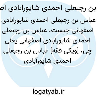 [ویکی فقه] عباس بن رجبعلی احمدی شاپورآبادی اصفهانی. عباس بن رجبعلی احمدی شاپورآبادی اصفهانی، از شعرای معاصر اصفهان بوده است.