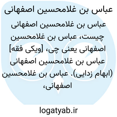 [ویکی فقه] عباس بن غلامحسین اصفهانی (ابهام زدایی). عباس بن غلامحسین اصفهانی، ممکن است اشاره به اشخاص و شخصیت های ذیل باشد: • عباس بن غلامحسین زمانی اصفهانی، از شاعران معاصر اصفهان• عباس بن غلامحسین گیاهی اصفهانی، از شعرا و هنرمندان معاصر اصفهان