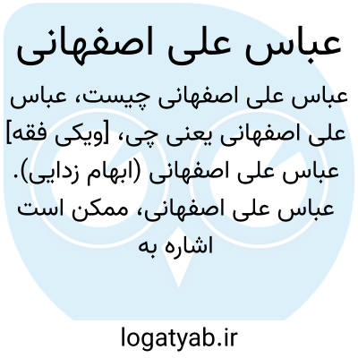 [ویکی فقه] عباس علی اصفهانی (ابهام زدایی). عباس علی اصفهانی، ممکن است اشاره به اشخاص و شخصیت های ذیل باشد: • عباس علی آذر چالشتری اصفهانی، از شعرای معاصر اصفهان• عباس علی بن ابراهیم صناعی اصفهانی، از شعرای معاصر اصفهان• عباس علی بن باقر پورصفا اصفهانی، از نقاشان معاصر اصفهان• عباس علی بن تقی بهرامیان سیچانی اصفهانی، از شعرای معاصر اصفهان• عباس علی بن برات علی موزون اصفهانی، از شعرای معاصر اصفهان• عباس علی بن محمدجعفر ادیب حبیب آبادی اصفهانی، از علماء و مجتهدین معاصر اصفهان• عباس علی بن محمدرضا برهانی پور اصفهانی، از دانشمندان و محقّقان معاصر اصفهان• عباس علی بن یداللّه اسکندری اصفهانی، از هنرمندان معاصر اصفهان• عباس علی بن کاظم خرم لنبانی اصفهانی، از شعرای اواخر دوره قاجاریّه در اصفهان• عباس علی بن غلامرضا علویجه ای اصفهانی، از فقها و علمای اصفهان• عباس علی بن غلامحسین ملکی نجف آبادی اصفهانی، از علمای معاصر اصفهان• عباس علی بن غلامحسین ملکی نجف آبادی اصفهانی، از علمای معاصر اصفهان• عباس علی بن علی محمد معین الواعظین گورتانی اصفهانی، از وعاظ معروف اصفهان در قرن چهاردهم هجری• عباس علی بن علی حافظ پرست آرام اصفهانی، شاعر و ادیب معاصر در اصفهان• عباس علی بن عبدالباقی ظریف خوانساری اصفهانی، از تجار و شعرای اصفهان در قرن چهارده هجری• عباس علی بن صادق محزون اصفهانی، از شعرا و ادبای اصفهان در قرن چهارده هجری• عباس علی موحدیان اصفهانی، از اساتید پزشکی اصفهان