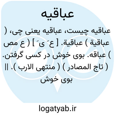( عباقیة ) عباقیة. [ ع َ ی َ ] ( ع مص ) عباقه. بوی خوش در کسی گرفتن. ( تاج المصادر ) ( منتهی الارب ). || بوی خوش به کسی یا چیزی چسبیدن. || منتشر شدن بوی خوش در مکان. || اقامت کردن در مکان. || حریص شدن به چیزی. ( اقرب الموارد ). || ( ص، اِ ) دزد سخت دزدنده. ( اقرب الموارد ) ( منتهی الارب ). || و انف له عباقیة؛ یعنی عار و ننگ است او را. ( منتهی الارب ) ( آنندراج ) ( ناظم الاطباء ). || مرد مکار و سگ زیرک. ( منتهی الارب ) ( اقرب الموارد ). || شی عباقیة؛ چیز لازم. ( منتهی الارب ) ( از ناظم الاطباء ) ( تاج العروس ). || شی له عباقیة؛ یعنی او را اثری است باقی. ( منتهی الارب ) ( آنندراج ). || اثر زخم در بهترین جای صورت. ( منتهی الارب ) ( از اقرب الموارد ). || درختی است خاردار. || باقی مانده بوی در چیزی. ( اقرب الموارد ) ( منتهی الارب ).