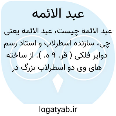 سازنده اسرطاب و استاد رسم دوایر فلکی (قر. 9 ه.) از ساخته های وی دو اسطرلاب بزرگ در تهران موجود است: یکی در مدرسه سپهسالار ناصری و دیگری در تصرف آقای سید جلال الدین تهرانی و هیچیک دارای تاریخ نیست و فقط به خط نسخ نوشته شده: صنعه عبدالائمة.