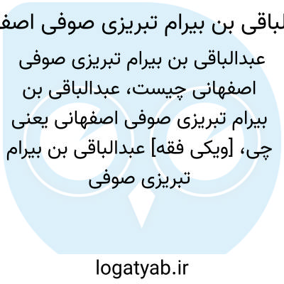 [ویکی فقه] عبدالباقی بن بیرام تبریزی صوفی اصفهانی، از مشاهیر خوشنویسان و از عرفاء و شعرای قرن یازدهم هجری در اصفهان بوده است.