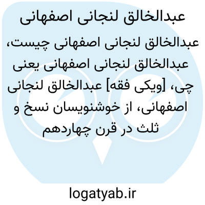 [ویکی فقه] عبدالخالق لنجانی اصفهانی، از خوشنویسان نسخ و ثلث در قرن چهاردهم هجری در اصفهان بوده است.