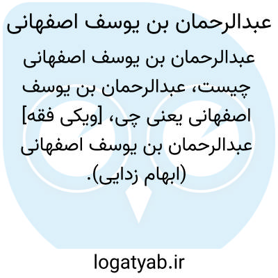[ویکی فقه] عبدالرحمان بن یوسف اصفهانی (ابهام زدایی). عبدالرحمان بن یوسف اصفهانی، ممکن است اشاره به اشخاص و شخصیت های ذیل باشد: • عبدالرحمان شافعی اصفهانی، از محدّثین عامّه اصفهان در قرن ششم هجری و ساکن مکّه• عبدالرحمان معدانی اصفهانی، از محدّثین عامّه اصفهان در قرن سوم هجری