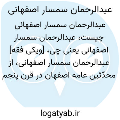 [ویکی فقه] عبدالرحمان سمسار اصفهانی، از محدّثین عامه اصفهان در قرن پنجم هجری بوده است.