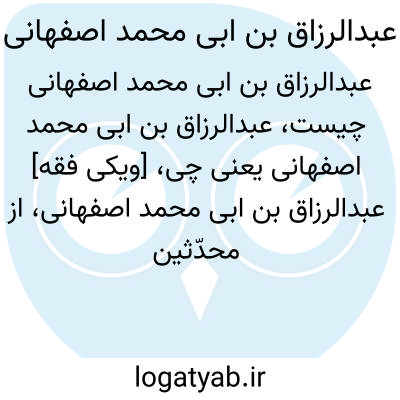 [ویکی فقه] عبدالرزاق بن ابی محمد اصفهانی، از محدّثین عامّه اصفهان در قرن چهارم هجری بوده است.