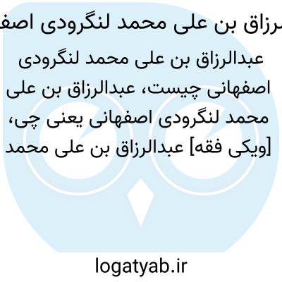 [ویکی فقه] عبدالرزاق بن علی محمد لنگرودی اصفهانی، از علمای اصفهان در قرن چهارده هجری بوده است.