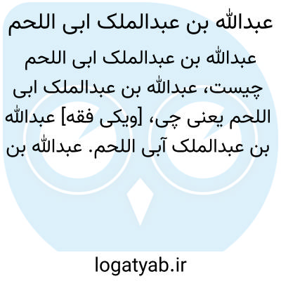 [ویکی فقه] عبدالله بن عبدالملک آبی اللحم. عبدالله بن عبدالملک بن عبدالله الغِفاری آبِی اللَّحْم (د ۸ق/۶۲۹م)، از صحابه پیامبر اکرم (صلی الله علیه وآله وسلم) بود.