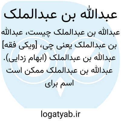 [ویکی فقه] عبدالله بن عبدالملک (ابهام زدایی). عبدالله بن عبدالملک ممکن است اسم برای اشخاص ذیل باشد: • عبدالله بن عبدالملک آبی اللحم، عبدالله بن عبدالملک بن عبدالله الغِفاری آبِی اللَّحْم (د ۸ق/۶۲۹م)، از صحابه پیامبر اکرم (صلی الله علیه وآله وسلم)• عبدالله بن عبدالملک المرجانی، معروف به مرجانی از علمای قرن هفتم و هشتم هجری قمری