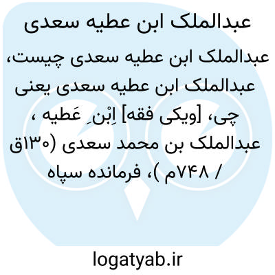 [ویکی فقه] اِبْن ِ عَطیه، عبدالملک بن محمد سعدی (۱۳۰ق / ۷۴۸م )، فرمانده سپاه اموی، والی مکه و مدینه در دوران مروان دوم، آخرین خلیفه اموی است.