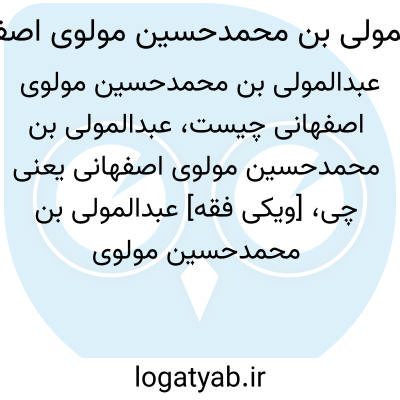 [ویکی فقه] عبدالمولی بن محمدحسین مولوی اصفهانی، از روزنامه نگاران و دوستداران فرهنگ در قرن چهاردهم هجری در اصفهان بوده است.
