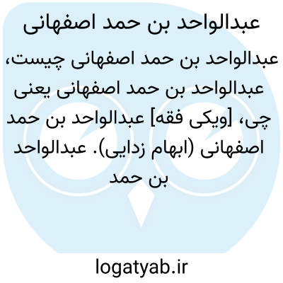 [ویکی فقه] عبدالواحد بن حمد اصفهانی (ابهام زدایی). عبدالواحد بن حمد اصفهانی، ممکن است اشاره به اشخاص و شخصیت های ذیل باشد: • ابوالمظفر عبدالواحد بن حمد سکری اصفهانی، از محدّثین و علمای قراءآت در قرن پنجم و ششم هجری در اصفهان• ابوالوفاء عبدالواحد بن حمد شرابی اصفهانی، از محدّثین عامّه اصفهان در قرن پنجم و ششم هجری