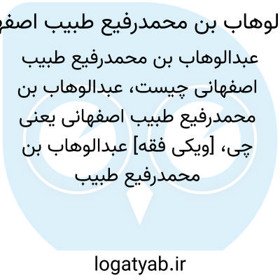 [ویکی فقه] عبدالوهاب بن محمدرفیع طبیب اصفهانی، از اطبّای اصفهان در قرن سیزدهم هجری بوده است.