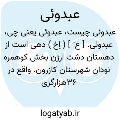 عبدوئی. [ ع َ ] ( اِخ ) دهی است از دهستان دشت ارژن بخش کوهمره نودان شهرستان کازرون. واقع در 36هزارگزی باختر نودان در دامنه جنوبی کوه چنگ واقع. و آب و هوای آن معتدل است.و 830 تن سکنه دارد. آب آن از چشمه تأمین میشود. محصولاتش غلات، عدس است. اهالی به کشاورزی اشتغال دارند. راه فرعی دارد. ( از فرهنگ جغرافیائی ایران ج 7 ).