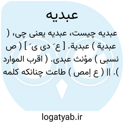 ( عبدیة ) عبدیة. [ ع َ دی ی َ ] ( ص نسبی ) مؤنث عبدی. ( اقرب الموارد ). || ( ع اِمص ) طاعت چنانکه کلمه عبودیت است. ( اقرب الموارد ). تقول هو بیّن العبدیة. ( اقرب الموارد )؛ یعنی طاعت او آشکار است. || ( ص نسبی ) الدراهم العبدیة؛ درهمها بود که از درهمهائی که پس از آن ساختند فاضل تر و راجح تر بود. ( اقرب الموارد ). نوعی از دراهم جید و اعلا. ( ناظم الاطباء ).