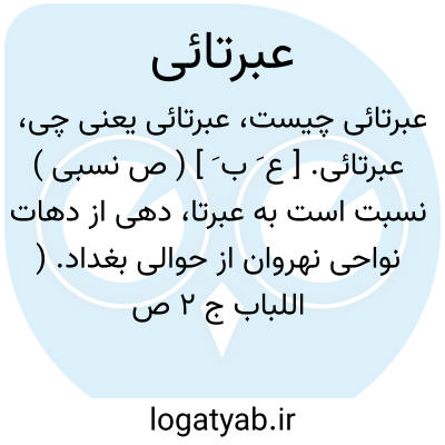 عبرتائی. [ ع َ ب َ ] ( ص نسبی ) نسبت است به عبرتا، دهی از دهات نواحی نهروان از حوالی بغداد. ( اللباب ج 2 ص 114 ).