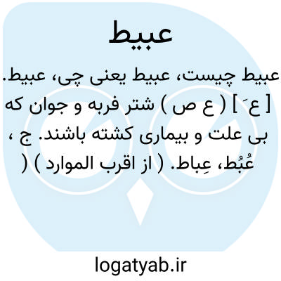 عبیط. [ ع َ ] ( ع ص ) شتر فربه و جوان که بی علت و بیماری کشته باشند. ج، عُبُط، عِباط. ( از اقرب الموارد ) ( منتهی الارب ) ( آنندراج ). || تازه. ( از اقرب الموارد ) ( منتهی الارب ). دم عبیط. لحم عبیط. ( آنندراج ). زعفران عبیط. ( اقرب الموارد ) ( منتهی الارب ) ( آنندراج ). || ثوب عبیط؛ جامه نو دریده. ( منتهی الارب ) ( آنندراج ). أدیم عبیط، مشقوق. ( اقرب الموارد ).