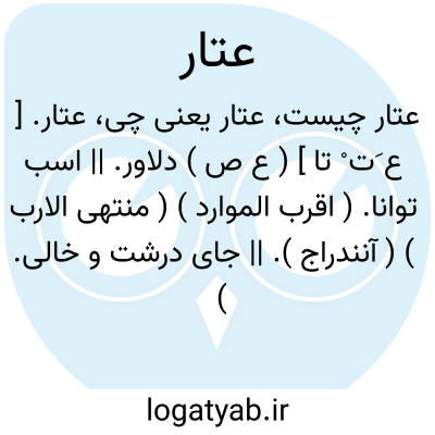 عتار. [ ع َت ْ تا ] ( ع ص ) دلاور. || اسب توانا. ( اقرب الموارد ) ( منتهی الارب ) ( آنندراج ). || جای درشت و خالی. ( از اقرب الموارد ) ( منتهی الارب ).