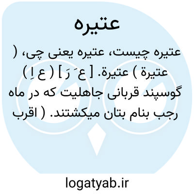 ( عتیرة ) عتیرة. [ ع َ رَ ] ( ع اِ ) گوسپند قربانی جاهلیت که در ماه رجب بنام بتان میکشتند. ( اقرب الموارد ) ( منتهی الارب ) ( آنندراج ). ج، عَتائر و آن گوسفند را رجبیه هم مینامیدند.