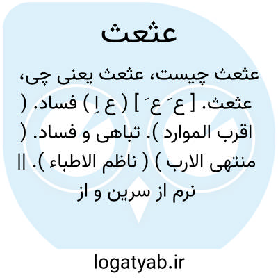 عثعث. [ ع َ ع َ ] ( ع اِ ) فساد. ( اقرب الموارد ). تباهی و فساد. ( منتهی الارب ) ( ناظم الاطباء ). || نرم از سرین و از زمین. ( اقرب الموارد ) ( منتهی الارب ). || پشته بی گیاه. ( اقرب الموارد ) ( منتهی الارب ) ( ناظم الاطباء ). || نام سرودگوی.( منتهی الارب ). || خاک. ( اقرب الموارد ). ج، عثاعث. || ( اِمص ) سختی. ( منتهی الارب ).