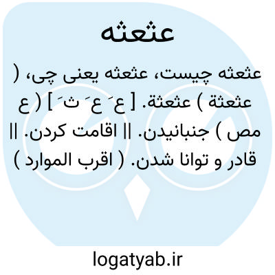 ( عثعثة ) عثعثة. [ ع َ ع َ ث َ ] ( ع مص ) جنبانیدن. || اقامت کردن. || قادر و توانا شدن. ( اقرب الموارد ) ( منتهی الارب ) ( ناظم الاطباء ). میل کردن. ( منتهی الارب ) ( اقرب الموارد ). || آرمیدن. ( منتهی الارب ). || افکندن کسی را در عثعث. ( اقرب الموارد ).