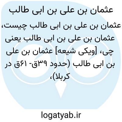[ویکی شیعه] عثمان بن علی بن ابی طالب (حدود ۳۹ق- ۶۱ق در کربلا)، از شهدای کربلا فرزند امام علی(ع) و فاطمه بنت حزام معروف به ام البنین و از برادران عباس بن علی(ع) است. بنا بر برخی روایات، عثمان در هنگام شهادت ۲۱ ساله بوده و فرزندی نداشته است. مدفن او در مقبره جمعی شهدای کربلا در حرم امام حسین(ع) است.