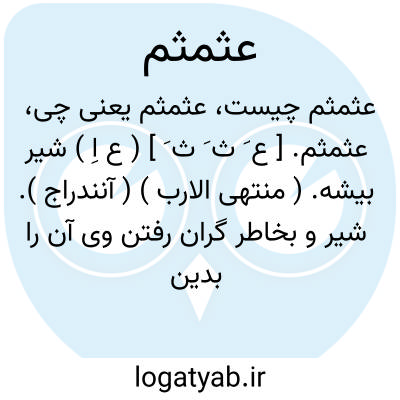عثمثم. [ ع َ ث َ ث َ ] ( ع اِ ) شیر بیشه. ( منتهی الارب ) ( آنندراج ). شیر و بخاطر گران رفتن وی آن را بدین نام خوانند. || ( ص ) شتر سخت اندام دراز. ( اقرب الموارد ) ( منتهی الارب ) ( آنندراج ).
